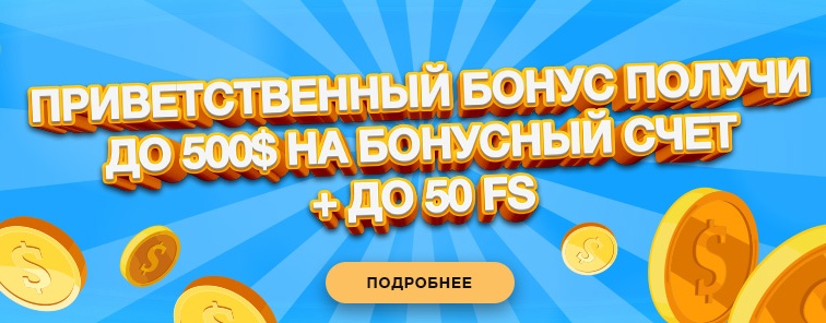 - ❤️ Приветственный бонус. Выдается за первое пополнение баланса на сайте. Равен 100% от внесенной на счет суммы, но не меньше 10 и не больше 500 долларов. Отыгрыш данного подарка осуществляется по вейджеру 45.